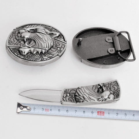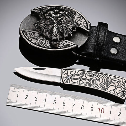 Tactical Self-defense Belt Buckle with Knife Men Leather Belt Hide Self-defense Knife