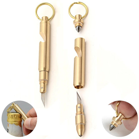 Mini Multifunctional Brass Knife Portable Keychain Screwdriver Survival Bottle Opener Multitool EDC Gadgets