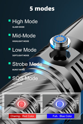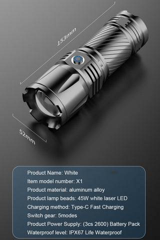 5000 Meters Long Throw LED Flashlight Typ-C Rechargeable Outdoor Zoom Flashlight