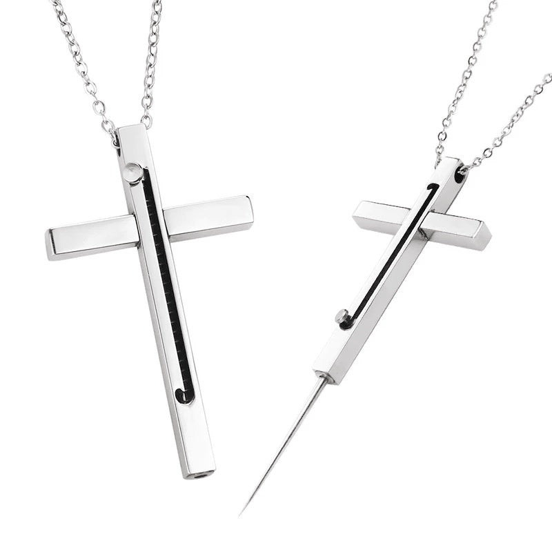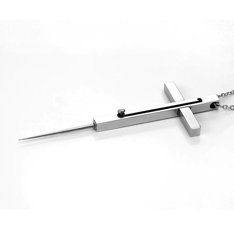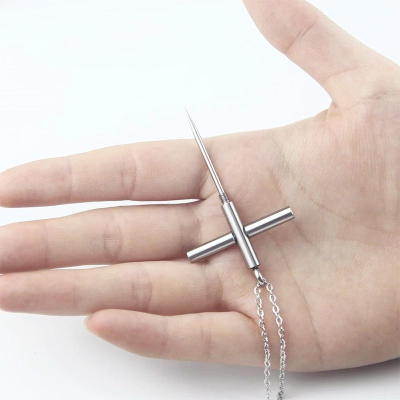 This is a cross necklace ornament, and also a creative outdoor self-defense gadget, which contains a needle. It is small and exquisite, and the stainless steel material is not easy to rust.