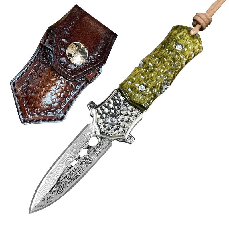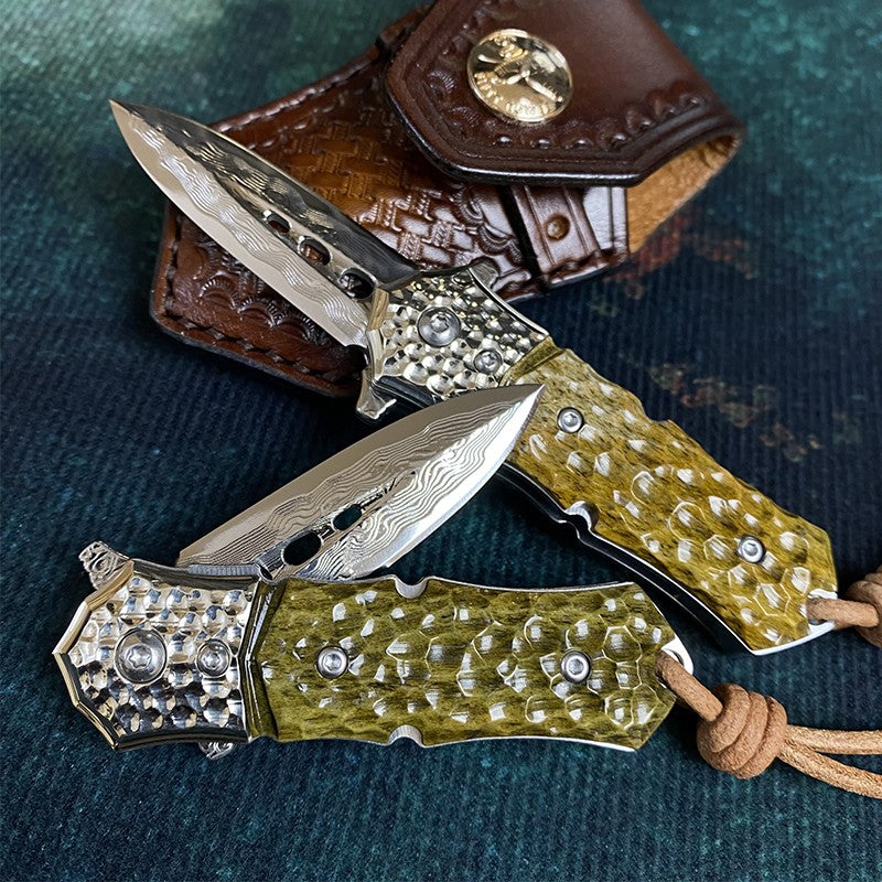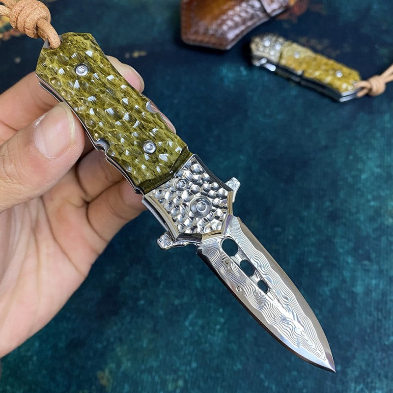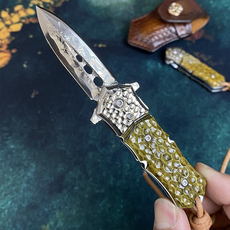 Meteorite Crater Damascus Steel Folding Knife High hardness EDC Outdoor Camping Hunting Knife