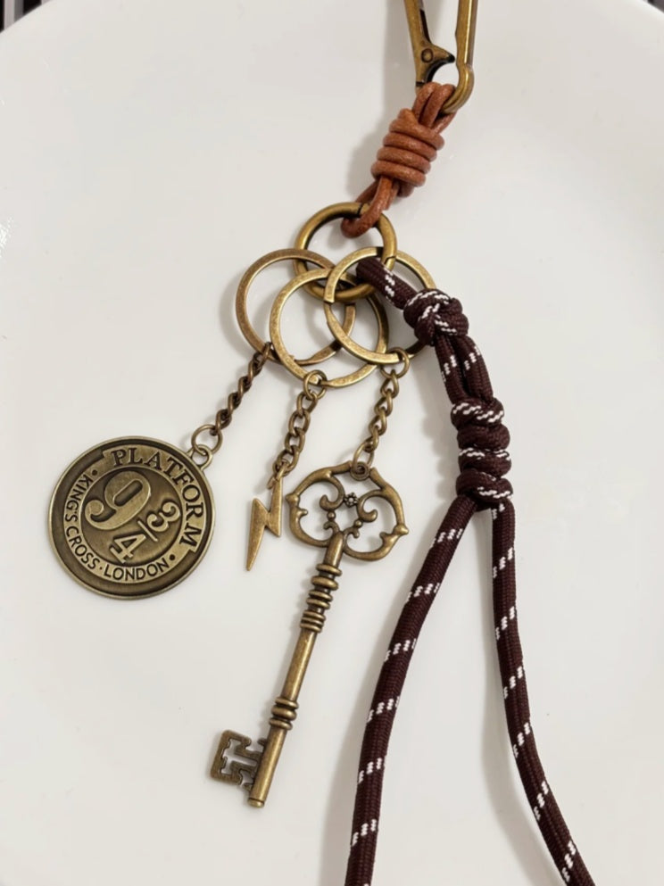 Keychain combination: lightning pendant, 934 pendant, lucky key, brown lanyard, leather lanyard, etc.