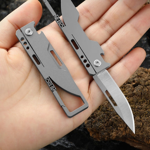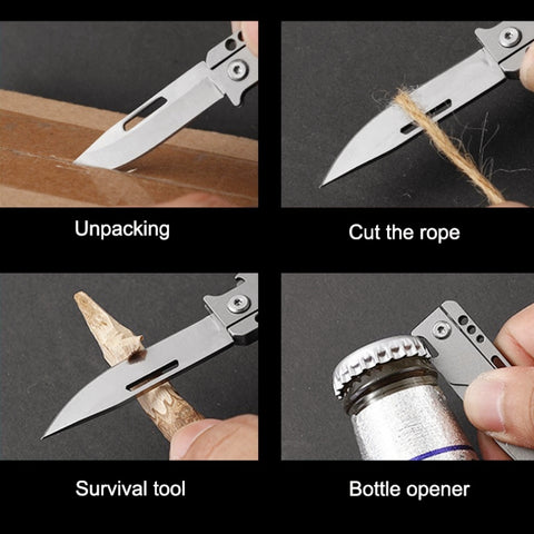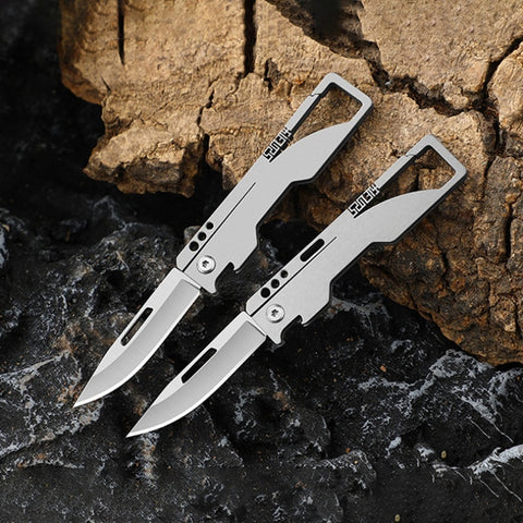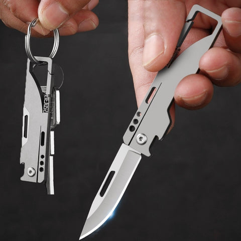 Functions: mini knife, multi-function key ring, Bottle opener, folding knife