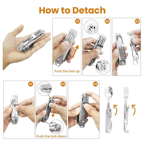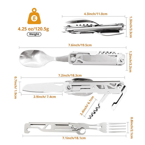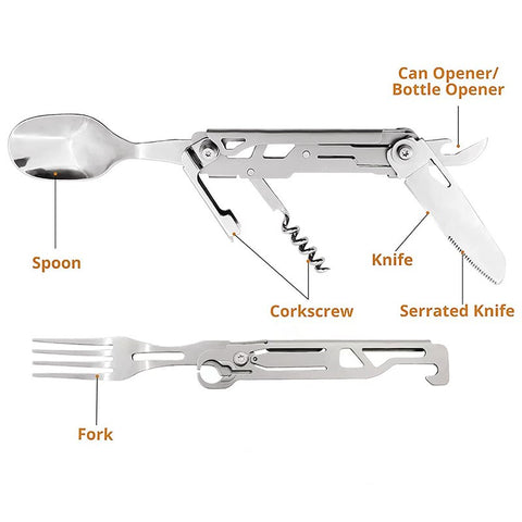 6 in 1 Multifunctional Camping Cutlery Outdoor Folding Tableware Stainless Knife Fork Spoon Portable