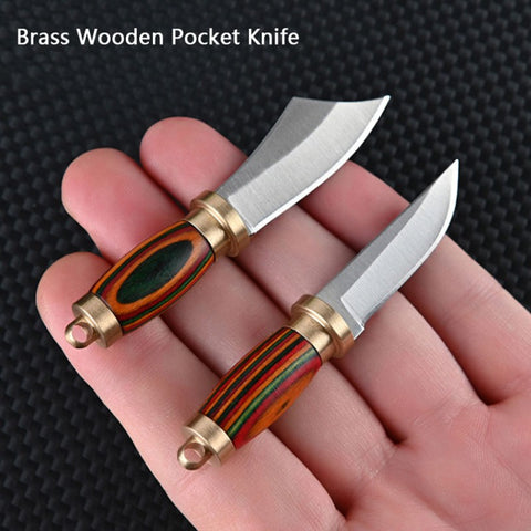 New Straight Small Wood Knife Portable Stainless-Steel Blade Keychain EDC Survival Tools